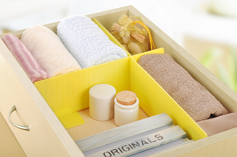 將物品分格放置,這樣既不用經(jīng)常整理又一目了然。