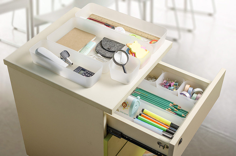 如果抽屜里的物品比較多,而且全部都堆放在一起,其實(shí)可以采用抽屜整理盒或是分隔板來劃分區(qū)域,