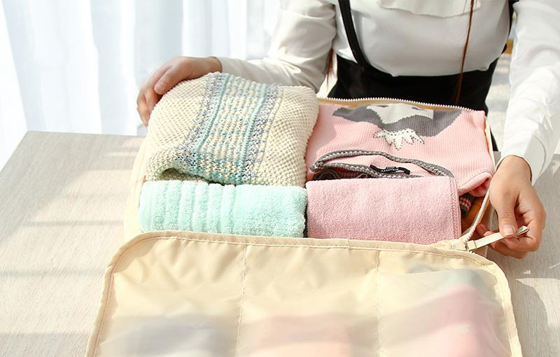 像是過季的衣服和床品我們可以采用真空收納袋來放置,抽掉袋子里的空氣,將物品壓縮存放。