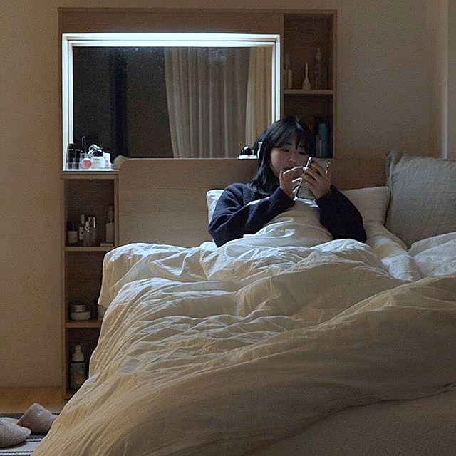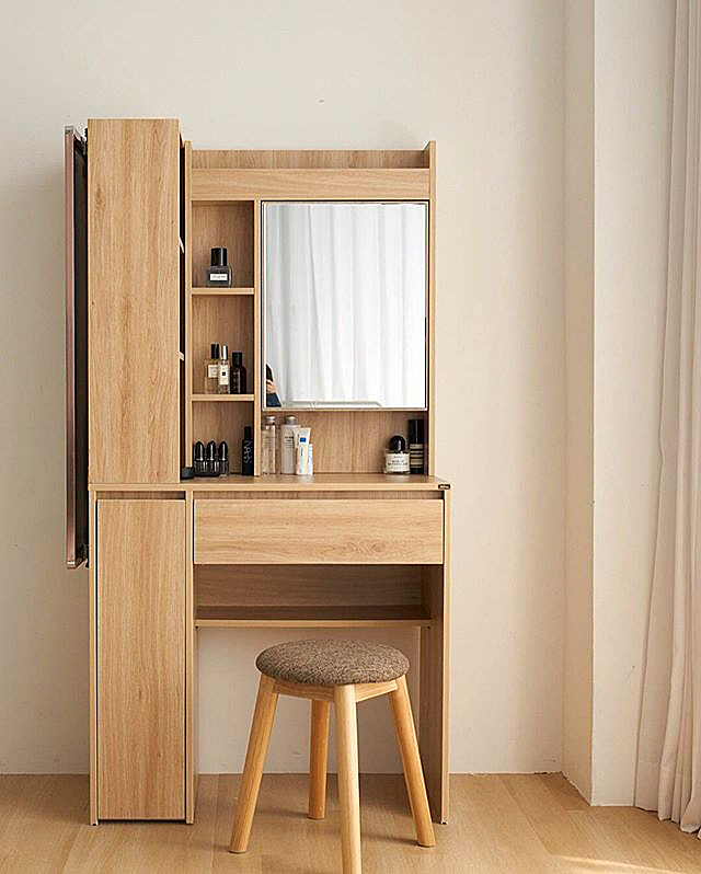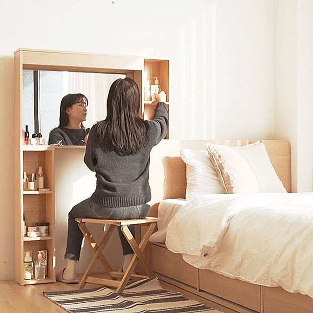 化妝結(jié)束后推回原位,節(jié)省空間,小臥室也毫無負擔感!
