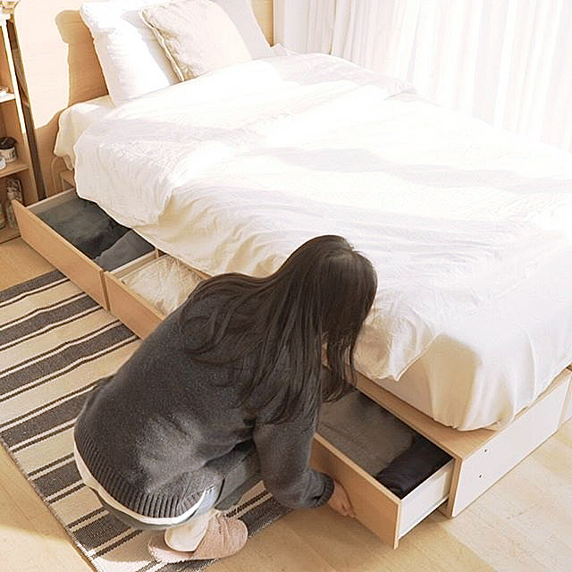 將床的下方全部作為收納空間使用。