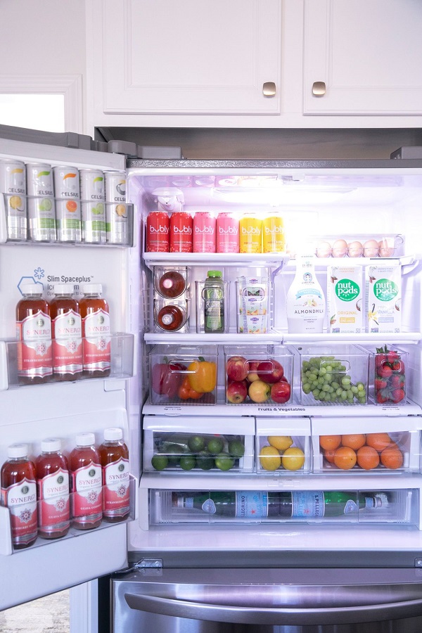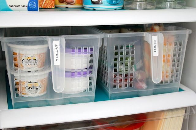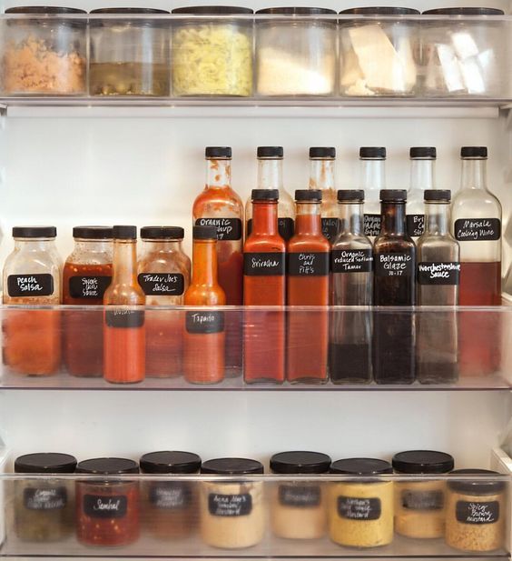 用簡單、干凈的塑料收納盒裝飾你過度擁擠的冰箱或餐具柜,這樣就算塞得滿滿當當你仍然可以清楚地看到你的庫存。