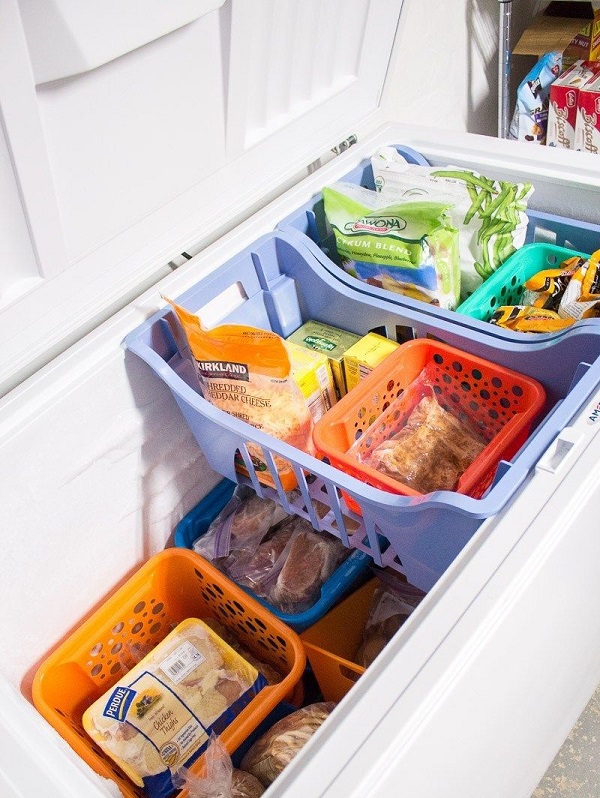 如果你的冰柜沒有很大的空間,可以用不同大小的塑料籃子進行分格和分層,這樣做就可以在冰箱里儲存很多東西了。