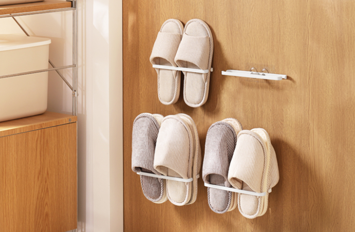 浴室水汽是有的,但穿著濕漉漉的拖鞋,走到哪里都是水印。這款壁掛拖鞋架,選用優(yōu)良鐵材質(zhì),有兩個不同的規(guī)格,滿足不同收納需求。魔力貼壁掛設計,利用垂直空間,擺脫拖鞋凌亂煩惱。