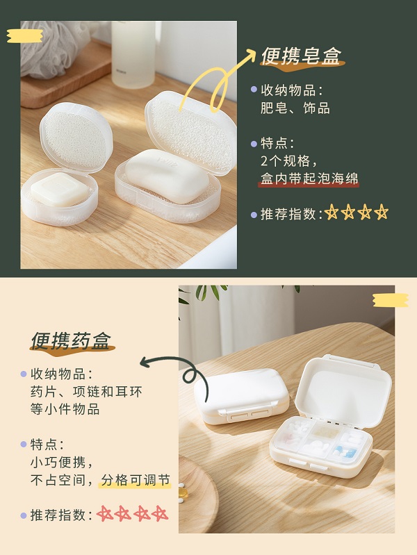 ①可收納物品:藥片、項鏈和耳環(huán)等小件物品