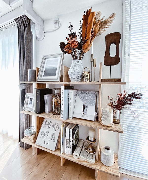 用一個(gè)木制的開放式架子,您可以在其中自由地裝飾自己喜歡的東西,從而實(shí)現(xiàn)特定的展示。