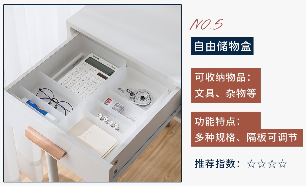 ①可收納物品:桌面或抽屜內(nèi)的文具、雜物等