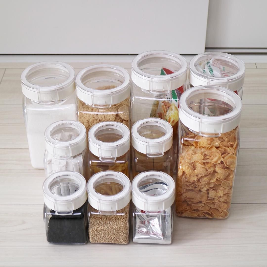 同樣,各種包裝零散的廚房也適合這種方法。干糧或調(diào)味料等,用同一種類的保存容器重新裝的話會變得清爽。使用可以看到里面物品的瓶子可以很容易地了解何時需補(bǔ)貨。