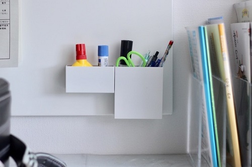 例如用磁性板將經(jīng)常使用的文具放在一起,或者使用橫桿和掛鉤將它們掛起來,都能很好地利用墻壁。而且東西不會占用臺面空間,能更長時間地保持清潔!