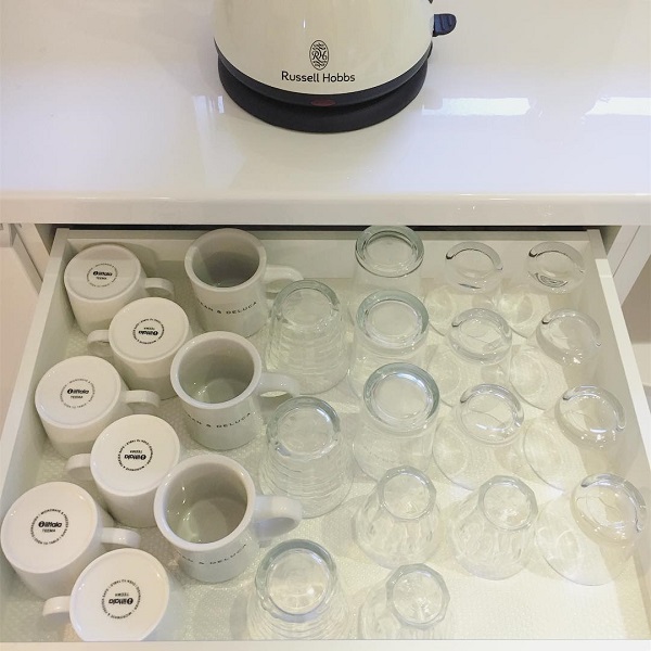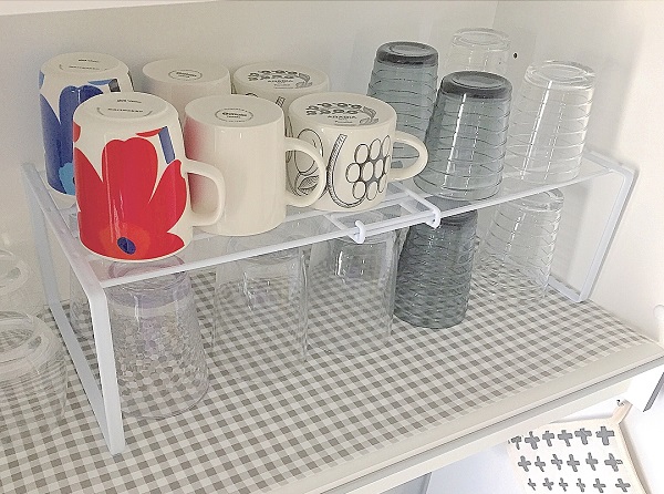 將杯子存放在柜子中時(shí),建議不要直接放置。通過(guò)增強(qiáng)層架,您可以存儲(chǔ)兩層,充分利用櫥柜內(nèi)部的縱向空間。透明或白色的隔板架,可以產(chǎn)生整潔的視覺(jué)感。