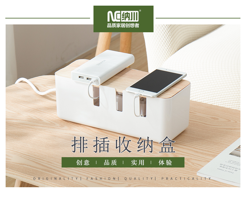 家電越來越多的家里環(huán)境,最重要的是家居安全問題,任由電線隨意擺放在各個位置,一不留神就容易被絆倒甚至發(fā)生漏電的危險,排插收納盒是預(yù)防這一問題產(chǎn)生最實用的小物件。多孔分流的設(shè)計,可以有序的規(guī)劃每一條線路,再加上記號標簽,清晰記錄標記,不混亂,容量不僅大,還通風(fēng)透氣加快散熱。潔白磨砂質(zhì)地的盒身搭配簡約素雅的橡木頂蓋,防塵之外給家增添一份情調(diào)。