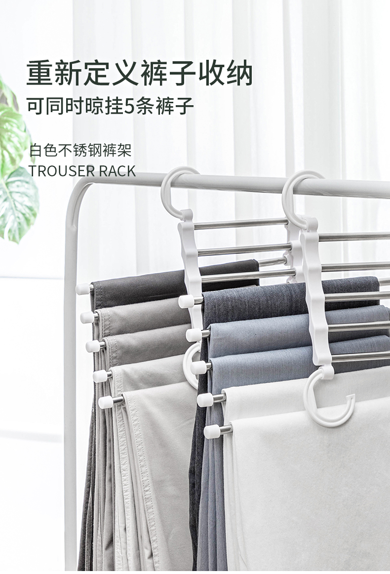 不銹鋼褲架不僅只是為了懸掛褲子,是衣柜里專門為正裝、西褲、領(lǐng)帶等一些不宜折疊的衣物而設(shè)計(jì)的衣柜收納神器。不銹鋼褲架采用的是不銹鋼管,有更好的承重力,同時(shí)可晾掛5條褲子節(jié)省衣柜空間,可以水平晾掛也可垂直晾掛,滿足不同空間大小的收納需求,添加貼心的保護(hù)帽保護(hù)吊掛衣物不易滑落或者刮傷,可拉伸至46厘米,伸縮自如。
