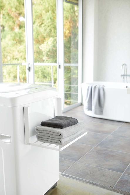 因?yàn)闆](méi)有地方放,不知不覺(jué)就把洗澡用的浴巾和衣服放在洗衣機(jī)上了嗎?像這個(gè)可以折疊的省空間的架子,只在使用時(shí)可以暫時(shí)放置,就很方便,不使用的時(shí)候緊湊地折疊就不礙事了。