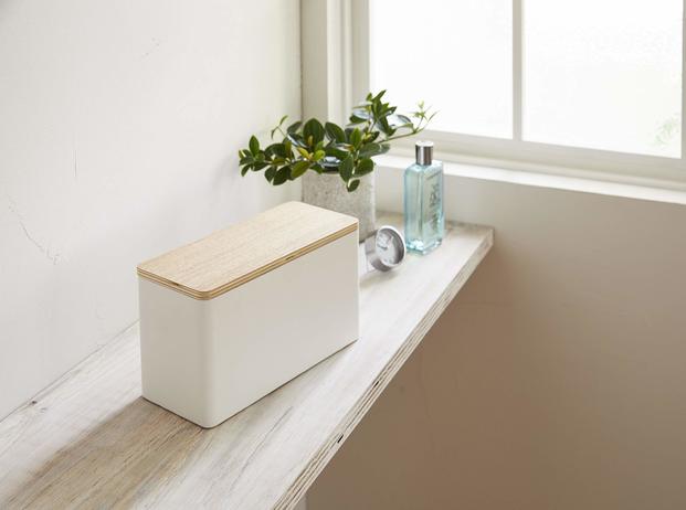 塑膠和竹木的組合大方時(shí)尚,可以很自然融入各種家裝風(fēng)格。如果尺寸足夠大,也可以同時(shí)存放要隱藏的濕紙巾等清潔用品