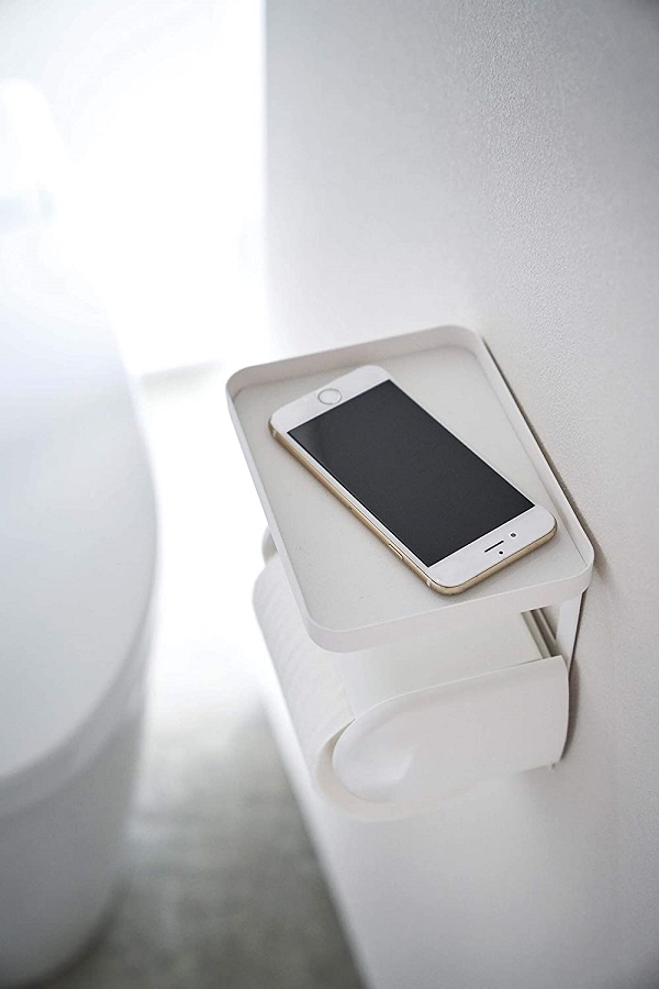 如果廁所里沒(méi)有放手機(jī)的地方很不方便。這個(gè)架子可以在衛(wèi)生紙收納盒上有創(chuàng)建一點(diǎn)置物空間。用來(lái)放芳香劑或裝飾性的綠色也很棒。