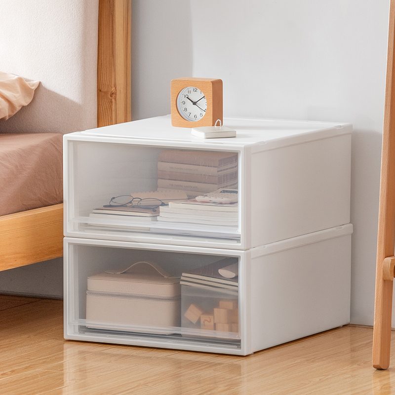 空間臥室不夠大,必備小物件卻很多,想要把隨手取用的東西都放在床邊怎么辦呢?納川抽屜式儲(chǔ)物箱,4種規(guī)格可以自由疊加組合,不受空間限制,沒有地方放床頭柜的小空間,也可以用小號(hào)儲(chǔ)物箱充分利用縫隙空間。抽屜式設(shè)計(jì)拿取便捷。配套卡扣,組合穩(wěn)固。居家小物分類廚房,整潔易拿取。