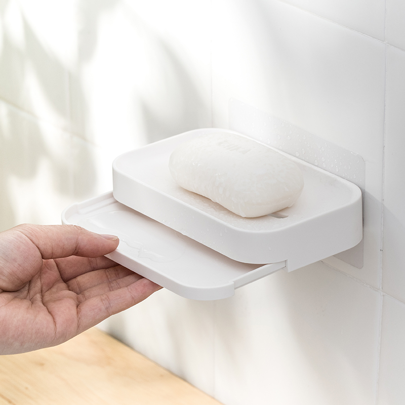 洗手后的香皂經常把浴室洗手臺弄得粘乎乎。納川壁掛皂盒,壁掛臺面兩用設計,便捷隨心。弧面設計,快速瀝水,肥皂不易泡水軟化。抽屜式集水托盤,抽拉順暢,方便倒水。配套魔力貼,壁掛安裝,不易損傷墻面??刹鸱智逑矗蓛粜l(wèi)生。
