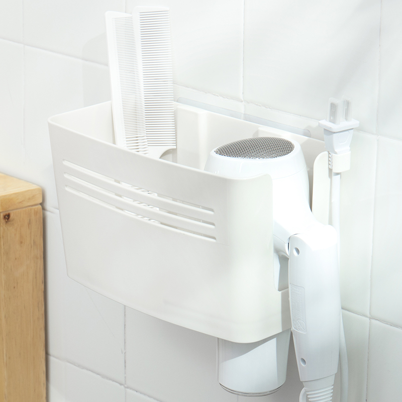 對于女生來說,風筒是浴室的高頻使用物品,收進柜子取用不便,隨手一丟則讓本來不大的浴室空間亂上加亂。納川多用風筒架,免釘壁掛安裝,輕松拓展墻面收納功能。鏤空設計,多種規(guī)格風筒均可放置??赏瑫r收納梳洗工具等零碎物品,整潔易取用。