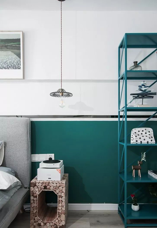 如果覺得上下分布式拼接,還不夠滿足自己的需求,可以嘗試著換個方向,從豎向做色彩拼接,這樣也可以讓空間更有層次感,而且還可以利用色彩分布來劃分區(qū)域,美觀又實用。