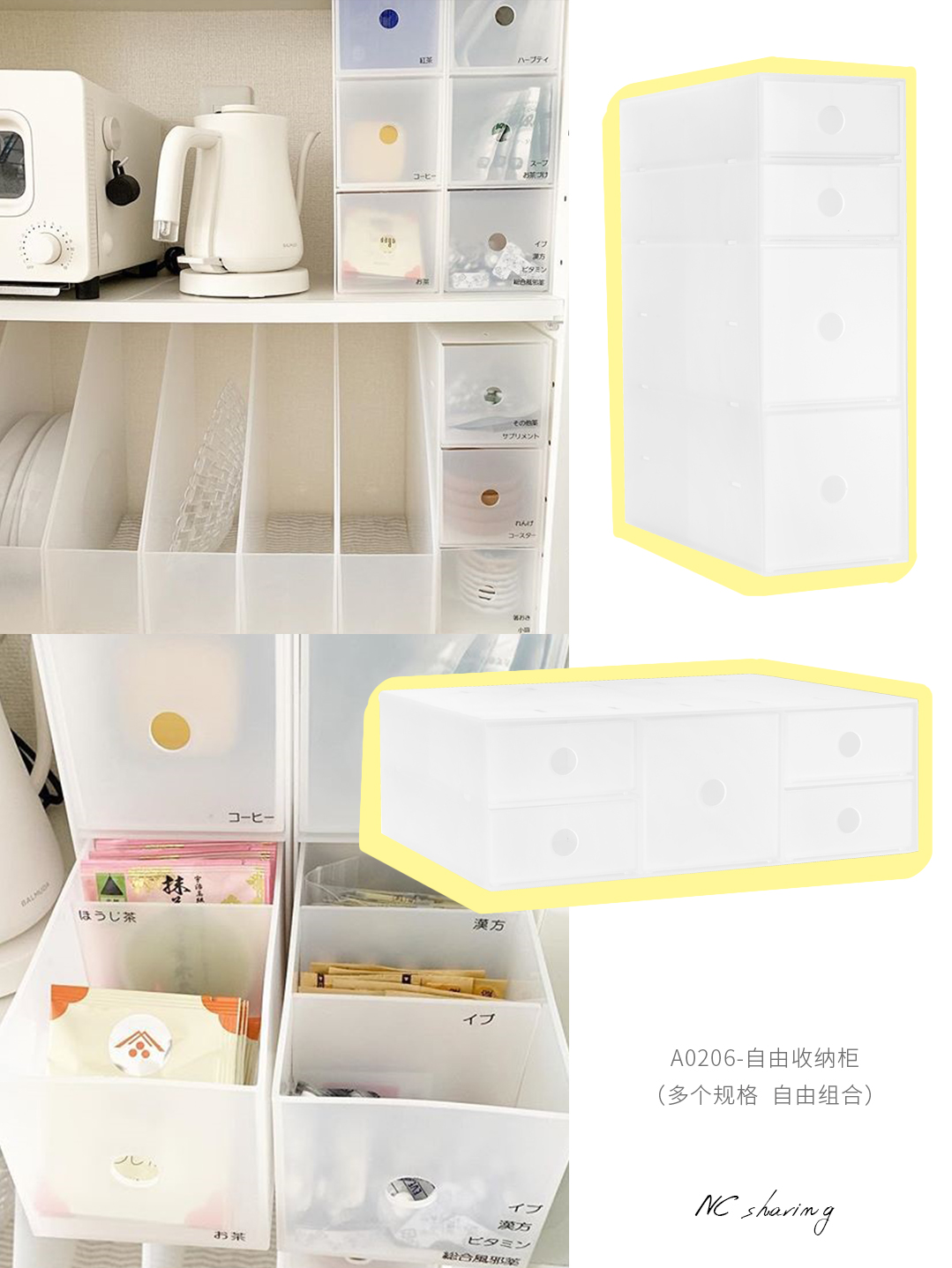 將零食、茶包等放在小抽屜,丟棄雜亂的包裝,需要時隨手拿取也是很好的體驗(yàn)。這款同樣適合收納桌面雜物哦。