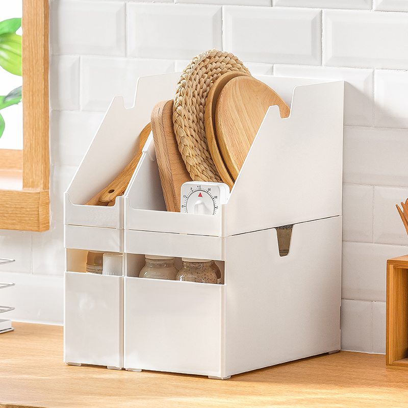 想到整潔的廚房空間,櫥柜的每一寸空間都要利用起來(lái)。納川疊加櫥柜盒,4種規(guī)格可選,輕松收納格式廚房用品。平面與斜面開(kāi)口,滿(mǎn)足不同收納需求??莎B加組合,底部墊腳疊放穩(wěn)固不松散。平面盒前后一高一低拉手,置于高低櫥柜均能輕松拉取。側(cè)面凹槽卡位,適用于各式鍋蓋手把,打造整潔櫥柜空間。