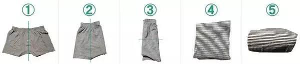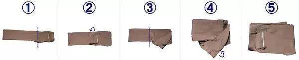 ● 長褲:對折→折疊腰部→折疊褲腿并塞到腰部的空隙中避免變形→完成
