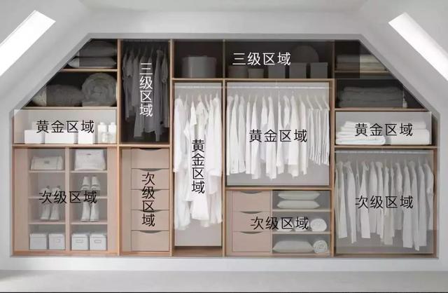 收納衣柜,需要劃分好衣柜里的功能區(qū)域,比如把最常穿的衣物放在最中間、最方便拿取的位置,衣柜功能具體可以這樣分區(qū):