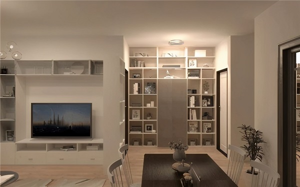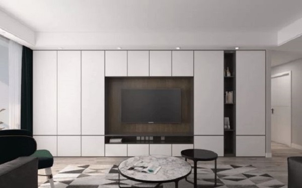 封閉式收納柜整體顯得整齊、清爽、簡潔,讓客廳的空間更有質(zhì)感,讓室內(nèi)活動(dòng)空間大。