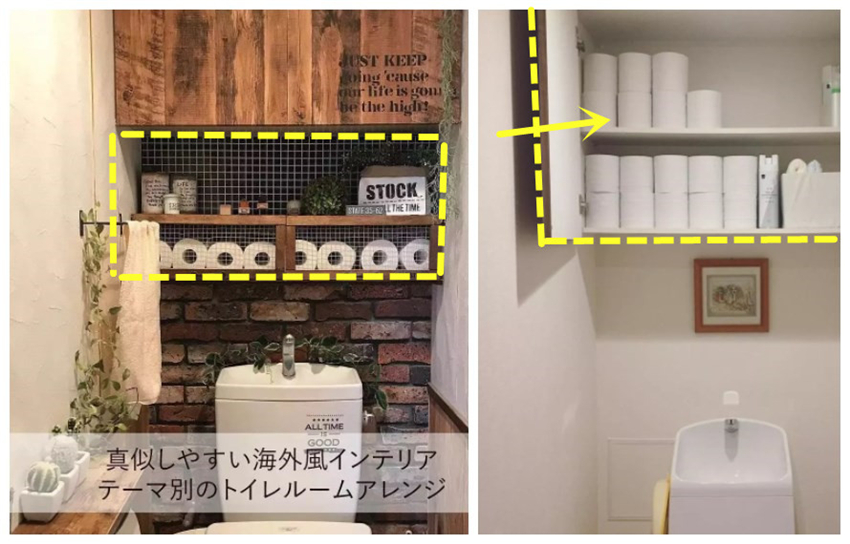 小戶型衛(wèi)生間收納也是問題,但日本主婦們更為精明,她們會在馬桶上方或者旁側(cè)加裝隔板,用來存放清潔用品,既美觀又省空間。