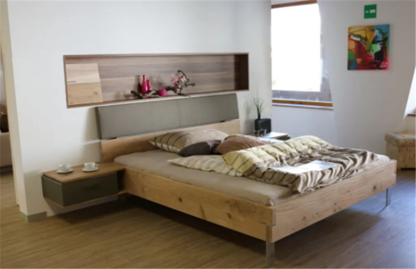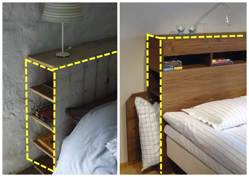 臥室內(nèi)的床頭柜通常占地方又不實(shí)用,不妨做成隔板的樣式,美觀好用。