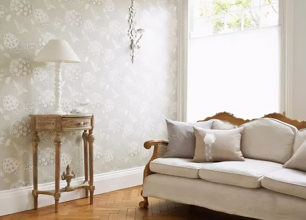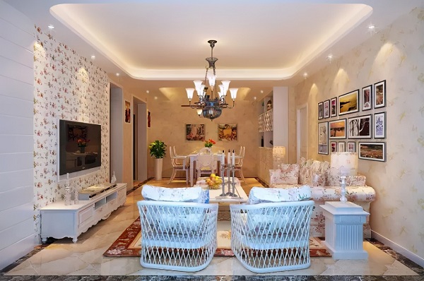 選擇時最主要的是選擇與客廳整體風格協(xié)調(diào)的圖案,營造和諧氛圍。滿墻貼飾可以選擇淡色小花的壁紙,這樣會把居室空間顯大。