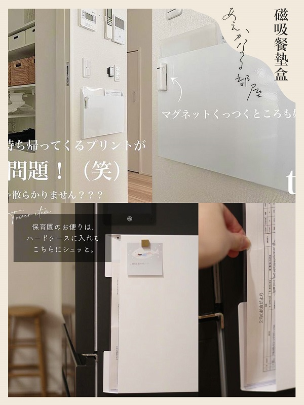 如果你有把菜譜或餐墊放在冰箱周?chē)牧?xí)慣,那這個(gè)最合適不過(guò),磁吸設(shè)計(jì)放上就能用。也可以安裝在墻上收納一些傳單,造型很輕薄,不會(huì)給空間帶來(lái)壓迫感。