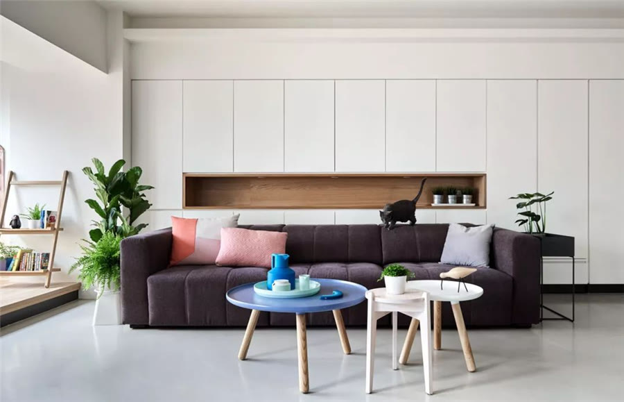 比如用隔板架代替沙發(fā)背景墻、用整體的柜子代替電視墻,這些增加收納空間的做法現(xiàn)在都非常常見,而且也很實(shí)用。