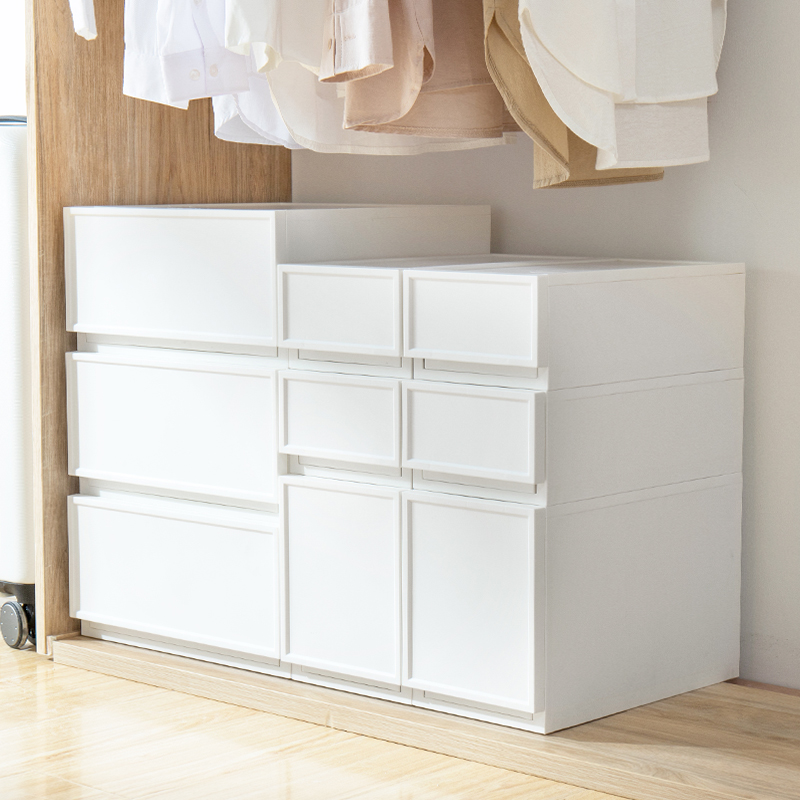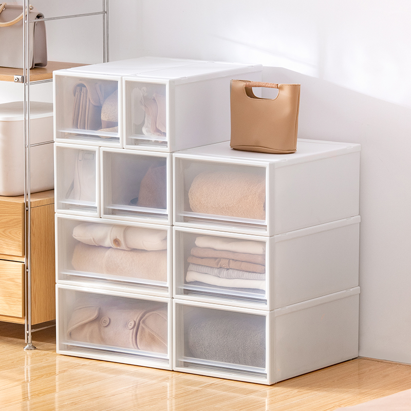 抽屜柜主要是作為日常輔助的儲(chǔ)物柜使用,它的主要功能是收納一些體積較小的物品。納川抽屜式儲(chǔ)物箱,四種大小規(guī)格,可自由疊加,適應(yīng)多種空間,滿足不同收納需求。小號(hào)可疊加做夾縫柜,充分利用邊角空間。抽屜前鎖扣設(shè)計(jì),按壓開啟可防止抽屜滑落。透明可視抽屜內(nèi)盒,物品一目了然,告別翻找麻煩。