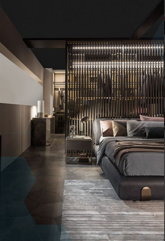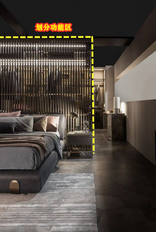 隔斷的本質(zhì)作用就是對(duì)空間的功能劃分,放在臥室上也是同樣如此。在空間足夠大的情況下,就可以通過(guò)這樣的隔斷設(shè)計(jì),提升整體的功能。