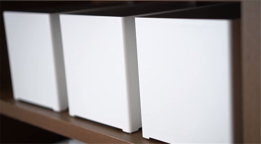 收納盒尺寸也影響到收納的效果。若盒子的長度寬度與置物架完全匹配,能擴(kuò)增儲(chǔ)物空間,存放更多的物品;而且整齊排放,看起來非常有序,絲毫不亂。