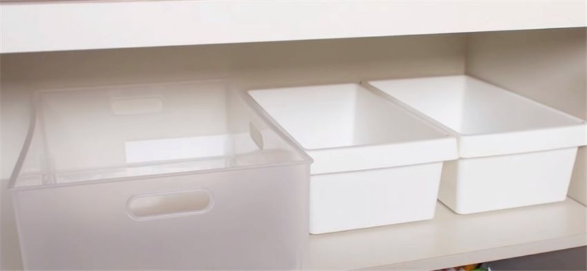根據(jù)儲(chǔ)物區(qū)的空間大小,選擇合適尺寸的收納盒,同一個(gè)柜子內(nèi)的盒子盡量統(tǒng)一。