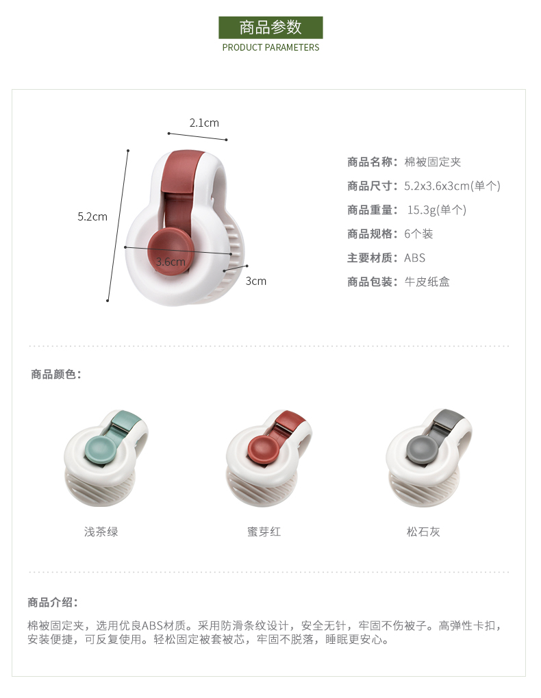 1、被套固定:一套6個,固定被套被芯,牢固不脫落