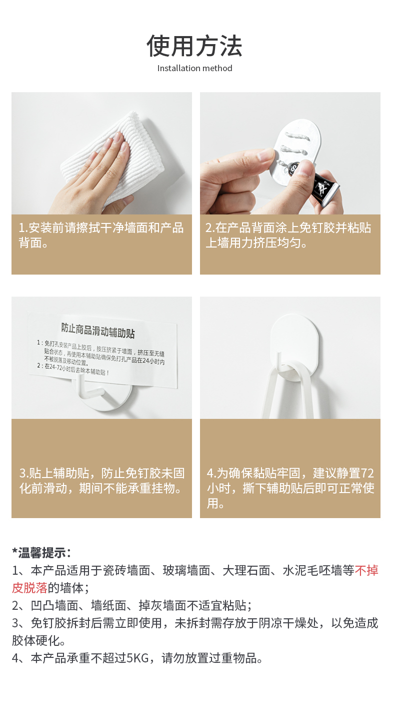 1.免釘安裝:免釘壁掛,拓展墻面收納功能