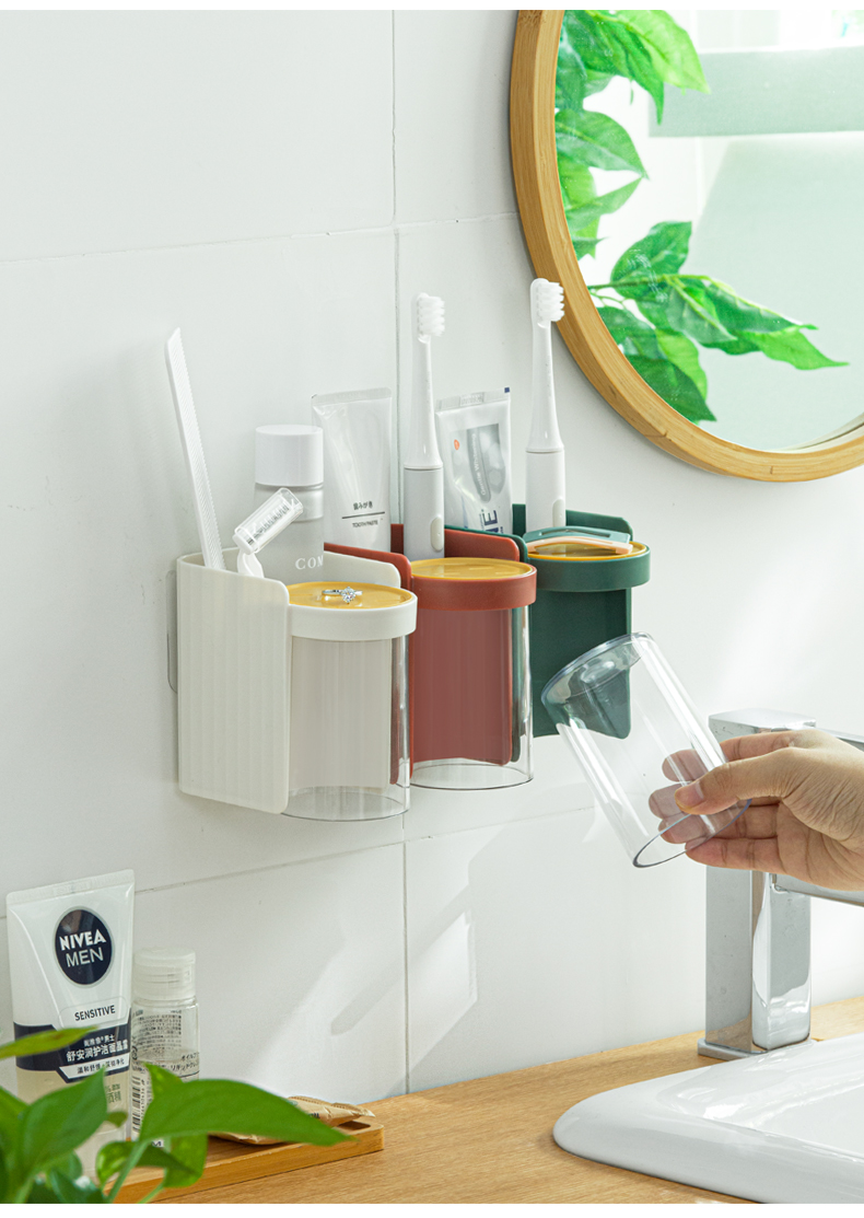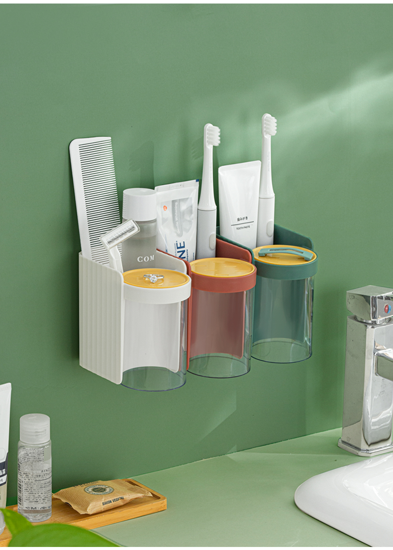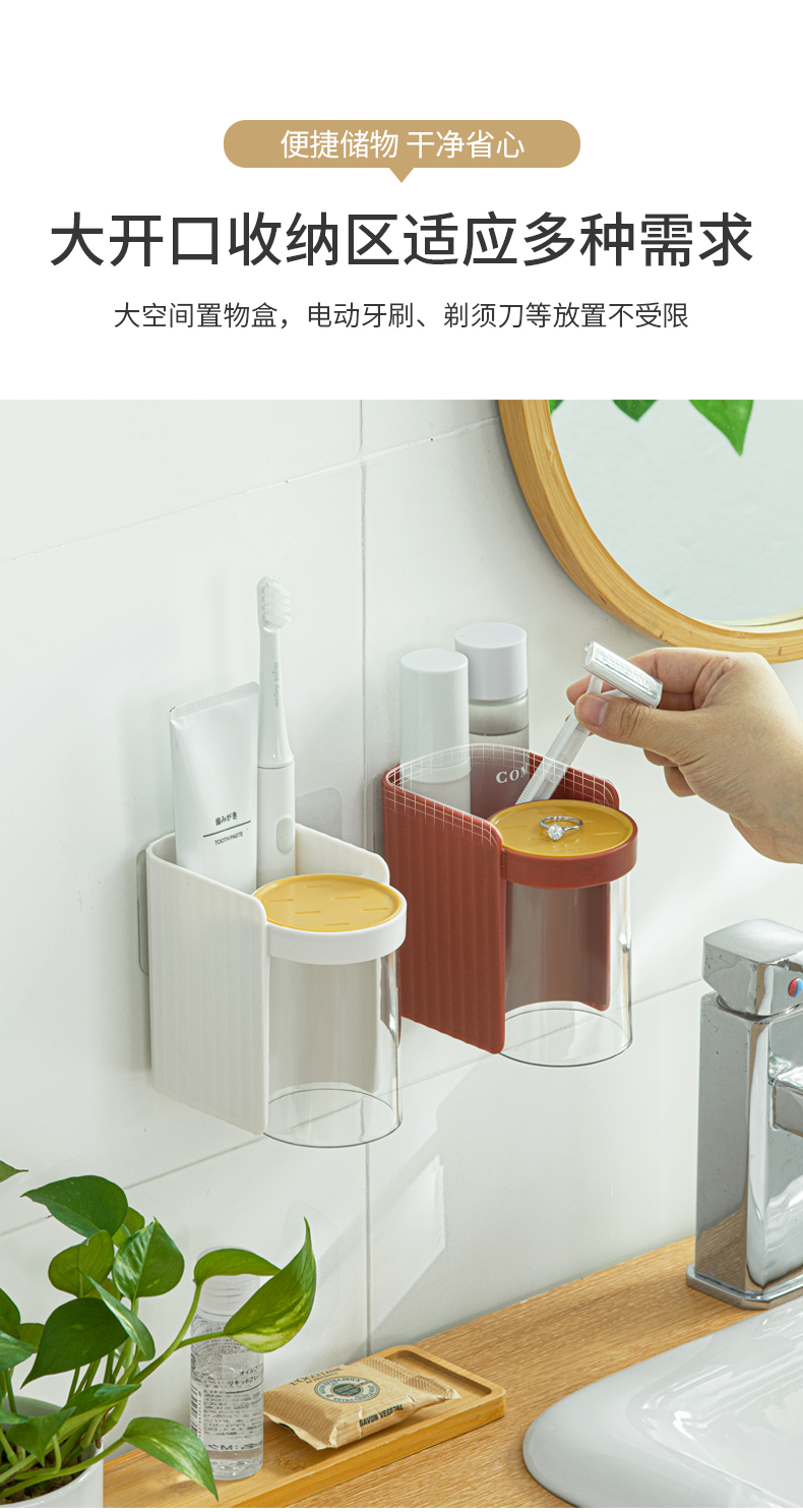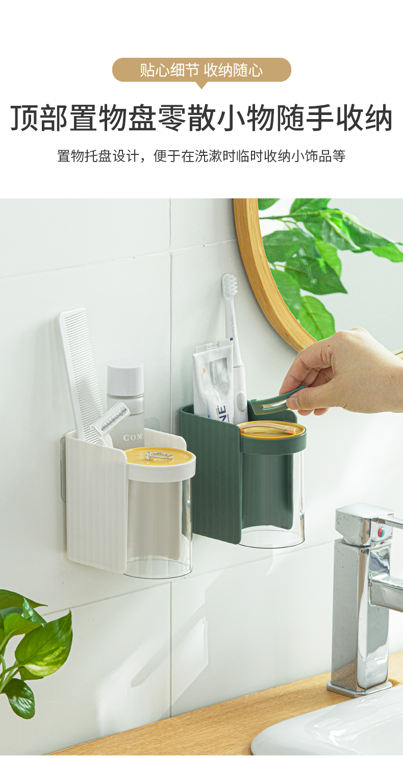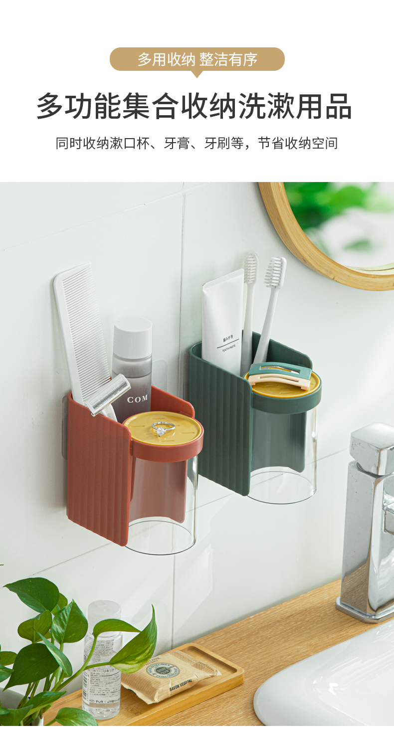 1、集合收納:同時收納漱口杯、牙膏、牙刷等