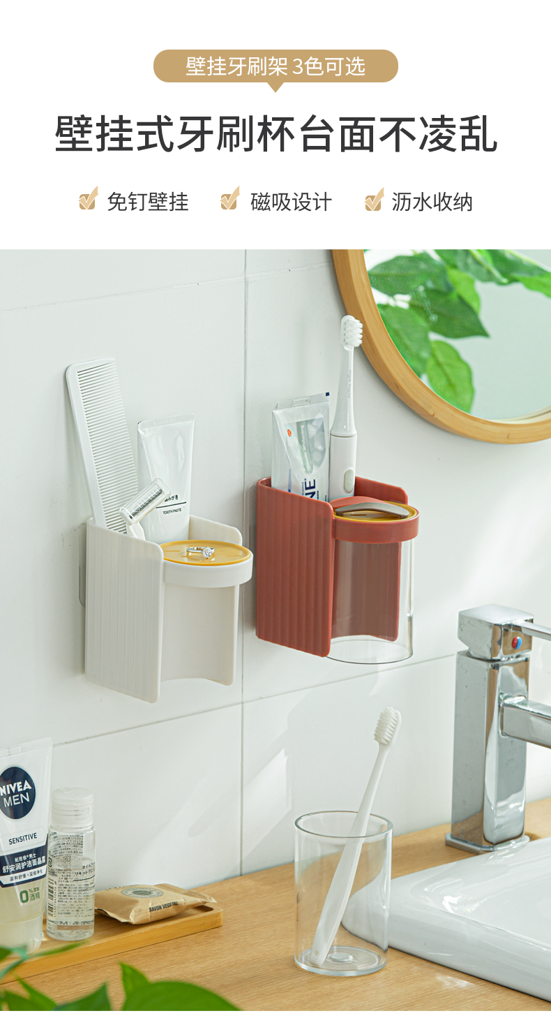 2、磁吸設計:漱口杯磁吸倒置,瀝干不積水