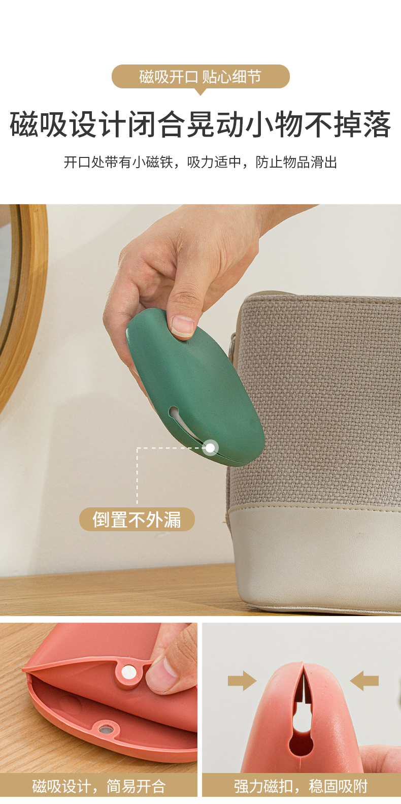2、磁吸開口:開口處磁吸設(shè)計(jì),防止物品滑出