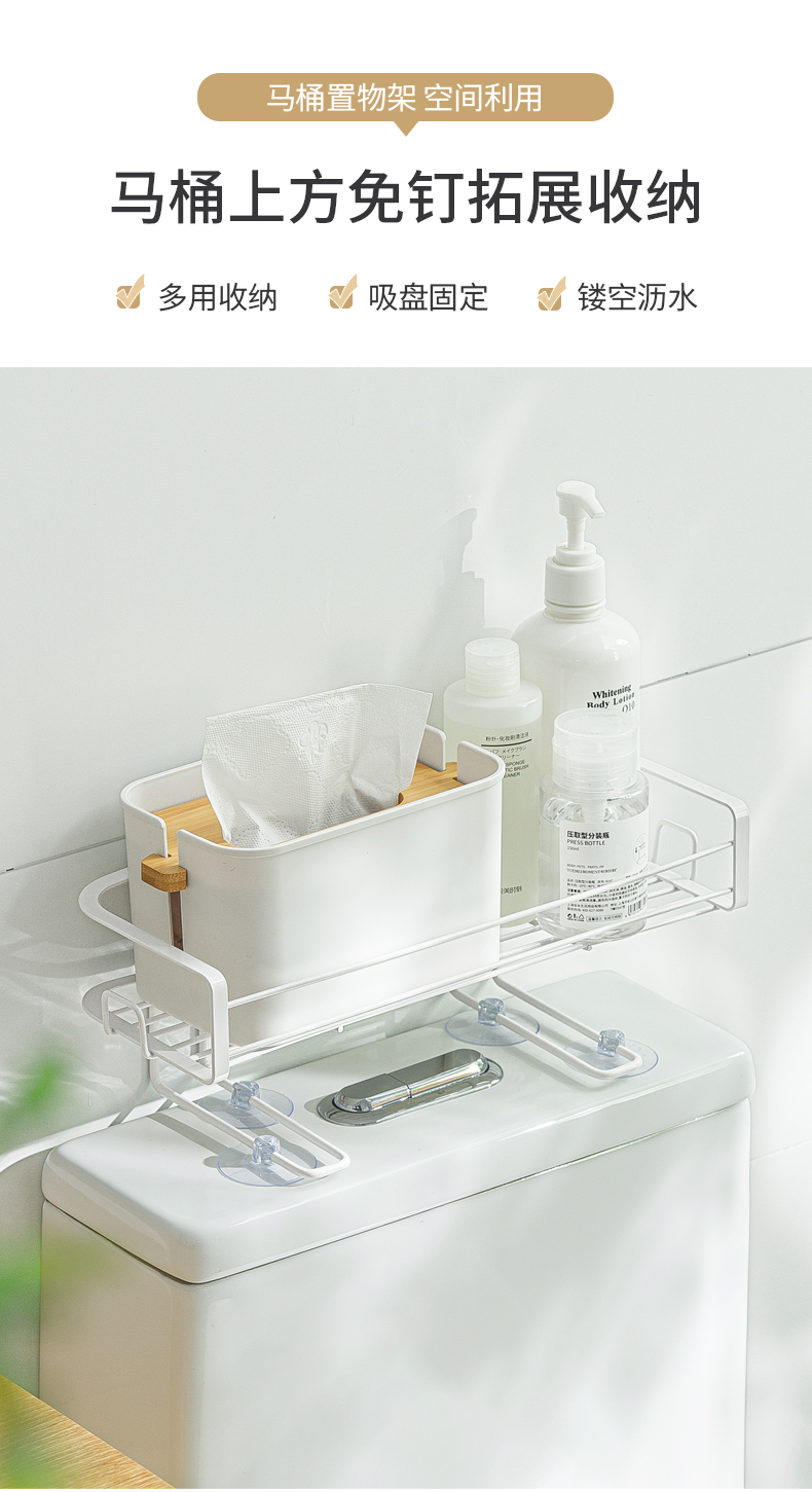1、擴展空間:置于馬桶水箱,收納各類浴室用品