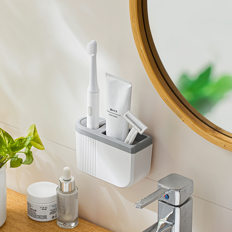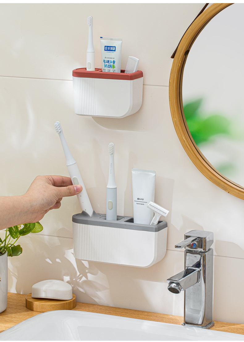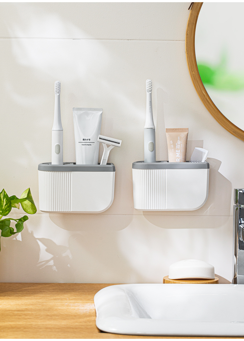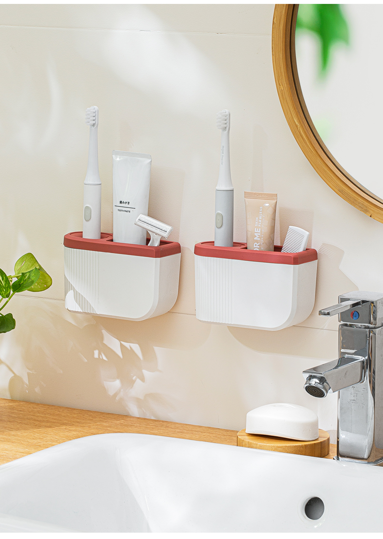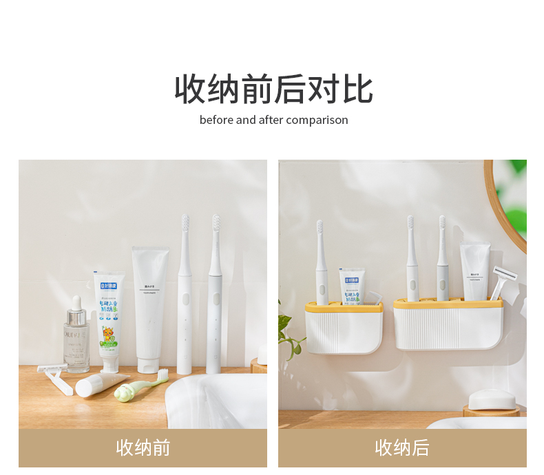 1、分類(lèi)收納:不同功能分格,洗漱用品整潔收納