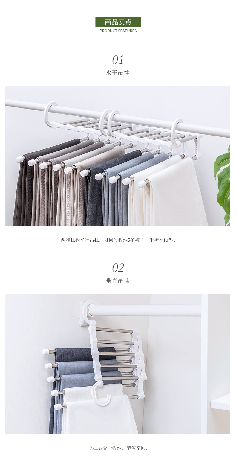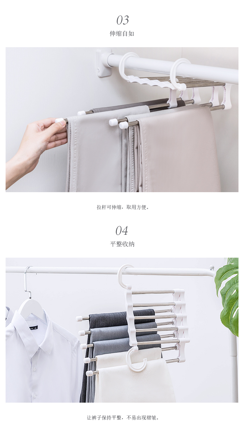 1、水平吊掛:可同時收納5條褲子,平衡不傾斜